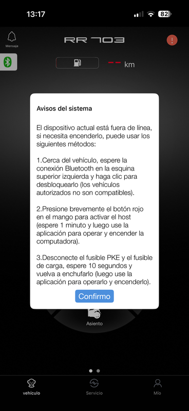 Buenas! Yo tengo la 703rr hace apenas una semana y tengo el problema de la app que pude vincularla perfectamente y compartir la pantalla del móvil (aunque si bloqueo el móvil se congela la navegacion) el problema que tengo es que no puedo hacer nada con la app me aparece el mensaje que dice el compañero y además este "Error en la operación " ya probé de todo y hay 2 versiones de la 703rr la 703rr y la 703rr BRM probé con las dos versiones y aparece éxito de vinculación pero en la versión BRM aparece que hay una actualización que tampoco puedo hacer porque no hace nada al darle ¿a alguien mas le pasa esto? No puedo ni bloquear ni abrir depósito ni nada... y el taller dice que no sabe que es ya que nadie le ha dicho nada sobre la app porque no suelen usarla... (que lo dudo) ::)